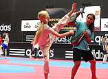 Auch die Teilnehmer und Teilnehmerinnen waren international aufgestellt. Sie kamen aus den verschiedensten Ländern Europas, Afrikas und Asien. Es herrschte eine Klasse Stimmung. Mit viel Spaß und Freude wurde motiviert und engagiert trainiert. Auf der Bühne standen zwei gestandene Sportlerinnen, die die Übungen vormachten. Der Moderator war kein anderer als der Bundestrainer Boris Winkler.